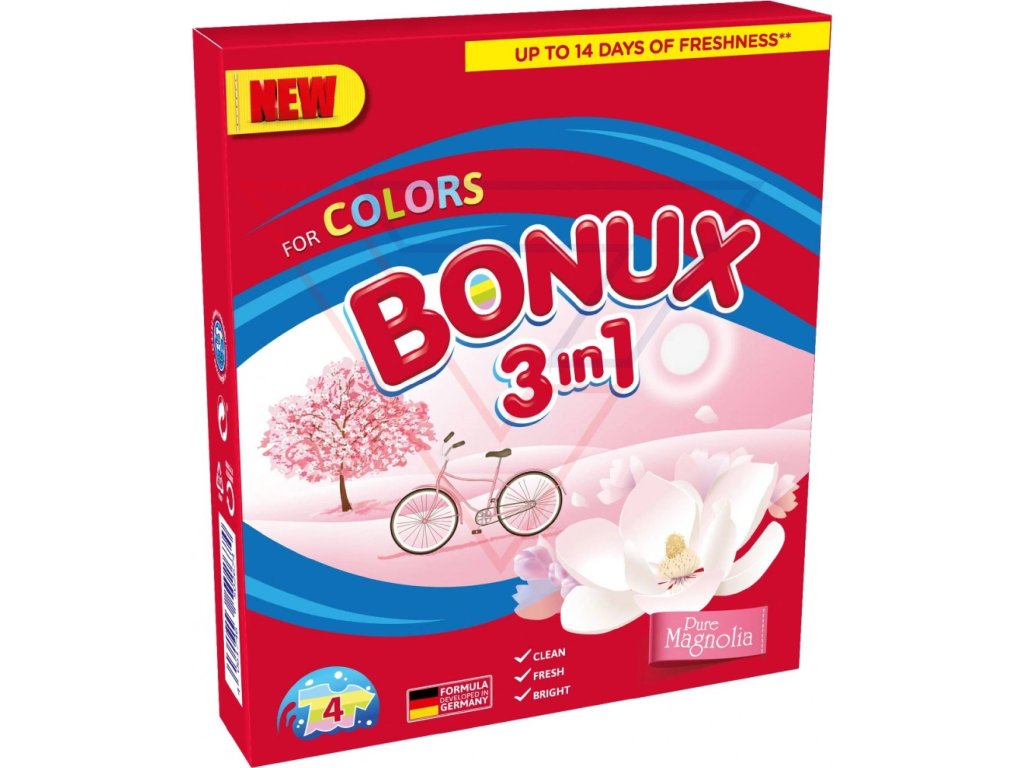 Prací prášok Bonux Color Pure Magnolia 3v1 je určený na farebné prádlo.