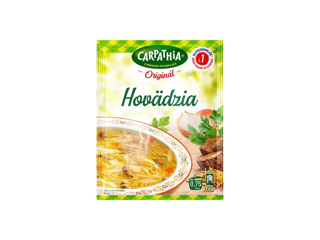 Hovädzia polievka s cestovinami 52 %. Dehydratovaný výrobok.