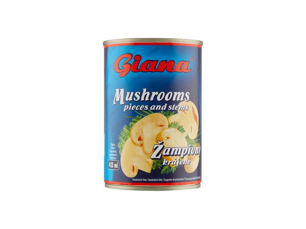 Šampiňóny krájané v slanom náleve. Pevný podiel 200 g.