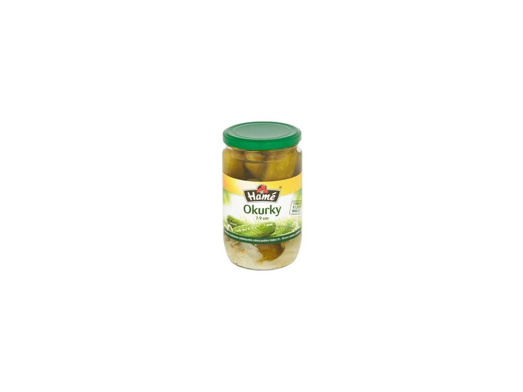 Uhorky - sterilizované v korenenom sladkokyslom náleve triedené podľa dĺžky 70 - 90 mm s cukrom a sladidlom. Spracovaná zelenina. Sterilizovaná zelenina, jednodruhová.