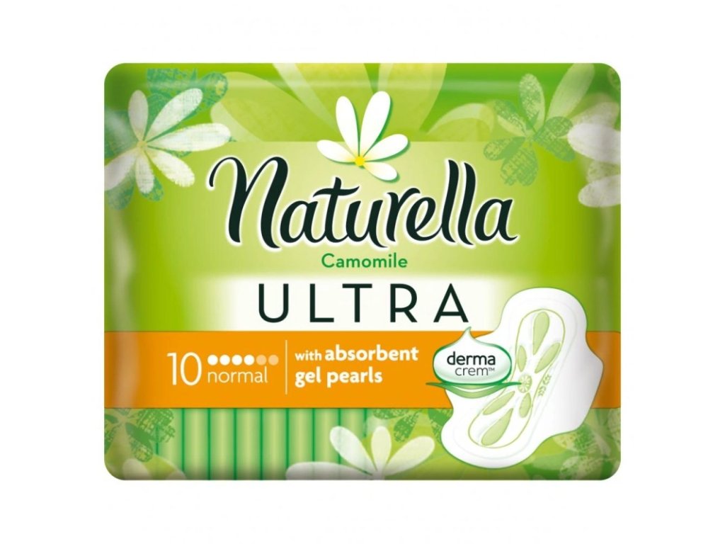 Hygienické vložky Naturella Ultra Normal s vôňou harmančeka a s krídelkami. Vložky sú tenké, ponúkajú pohodlie, diskrétnosť a hebkosť.