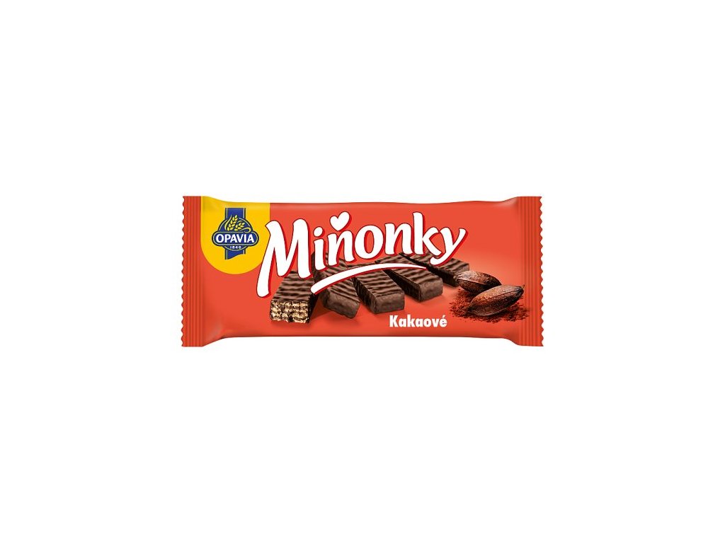 Plnené oblátky s kakaovou náplňou (45 %) celomáčané v kakaovej poleve (34 %).
