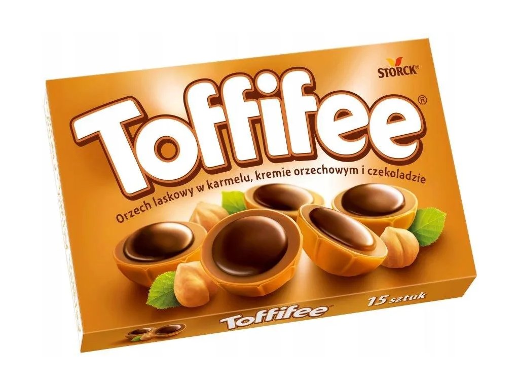 Celé jadro lieskového orieška (10 %) v karameli (41 %) s nugátovým krémom (37 %) a čokoládou (12 %).