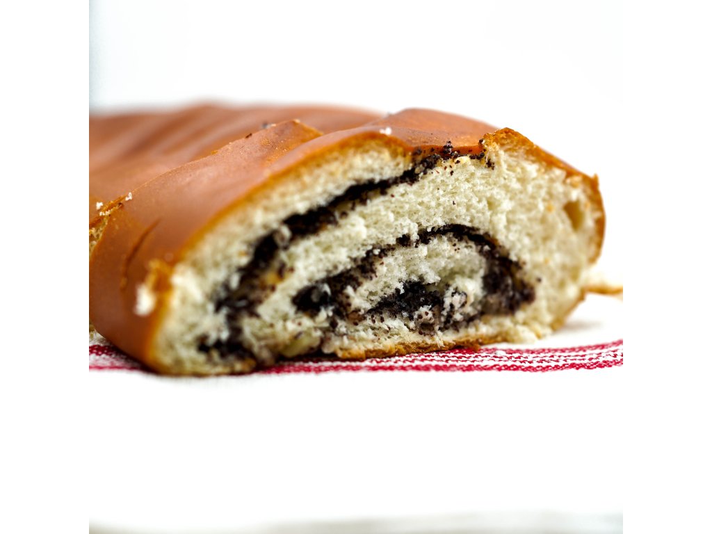 Koláč z kysnutého cesta s jablkovo-makovou plnkou, balený.
